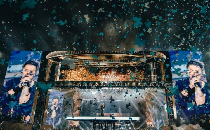 全息投影加衍射眼镜,营造出蝴蝶环绕的羼杂履行放胆,边际看台的不雅众无谓挤内场,一昂首就能看清他的神色,真确作念到了全场无死角互动。