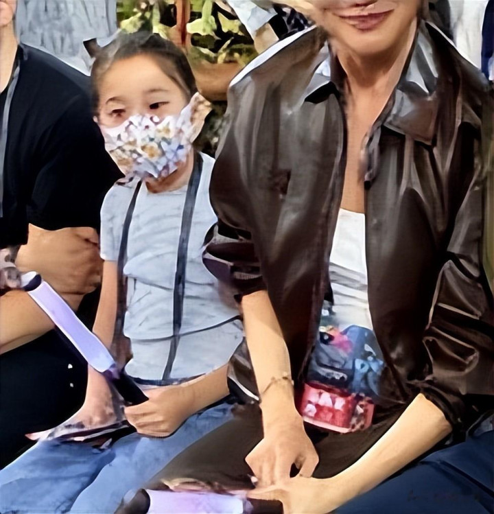 在谢婷婷的身边,还坐着她的女儿。