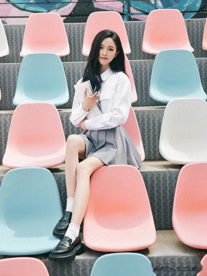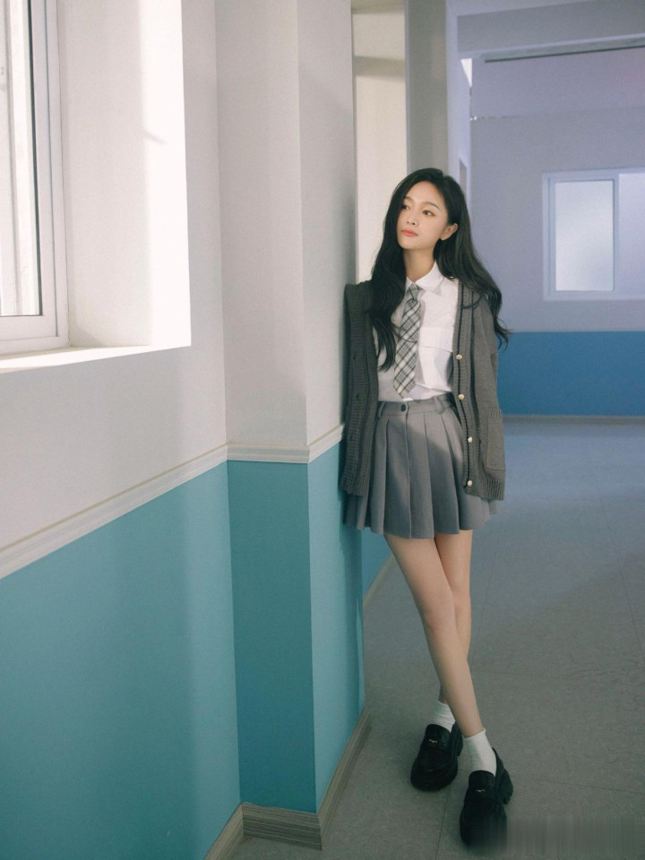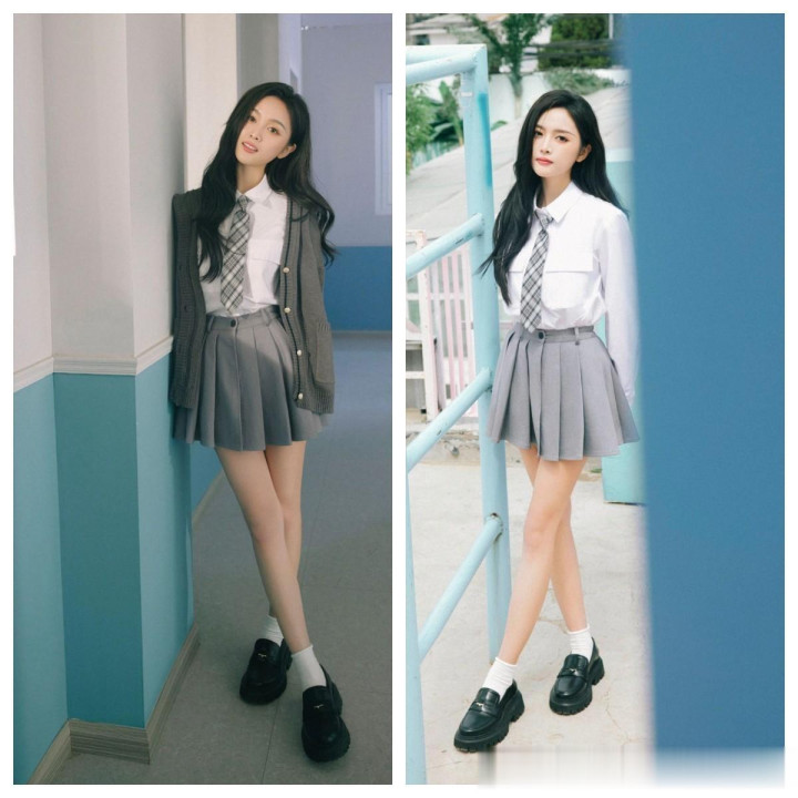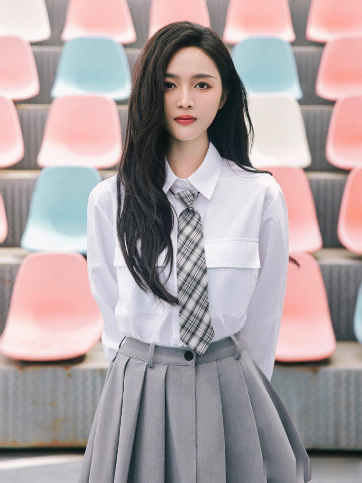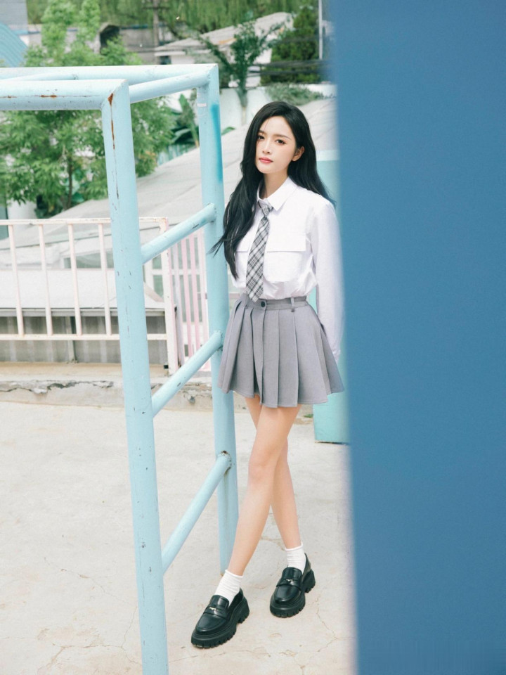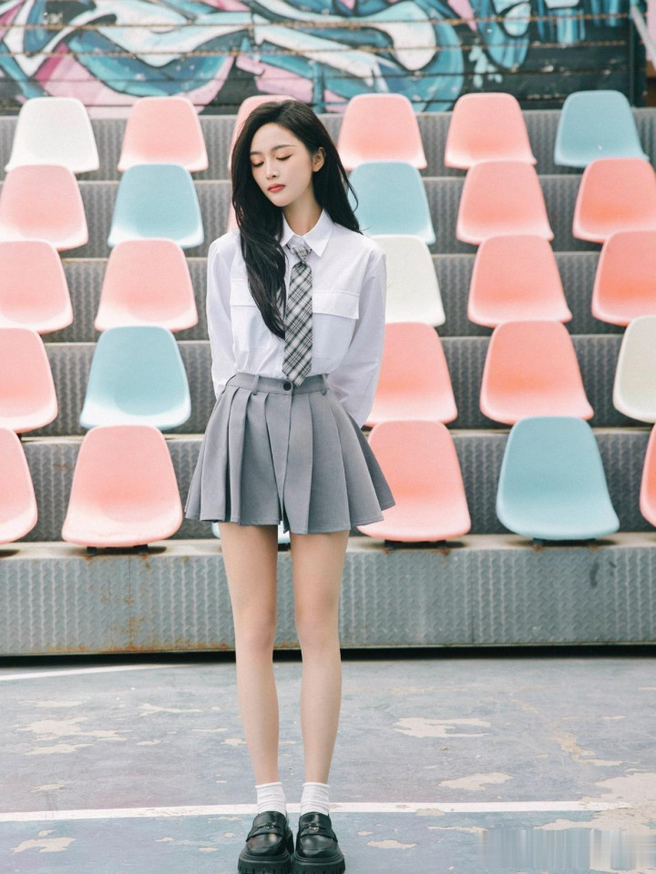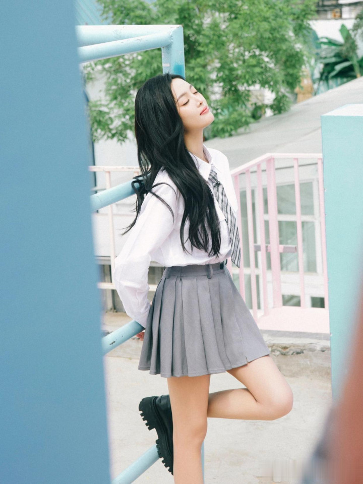 > huangguan体育app 吴宣仪, 校园师姐穿, 白衬衣小灰裙, 好意思腿白袜子, 纯好意思可东谈主。