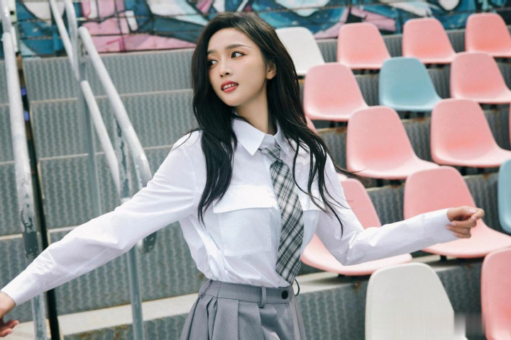 huangguan体育app 吴宣仪, 校园师姐穿, 白衬衣小灰裙, 好意思腿白袜子, 纯好意思可东谈主。