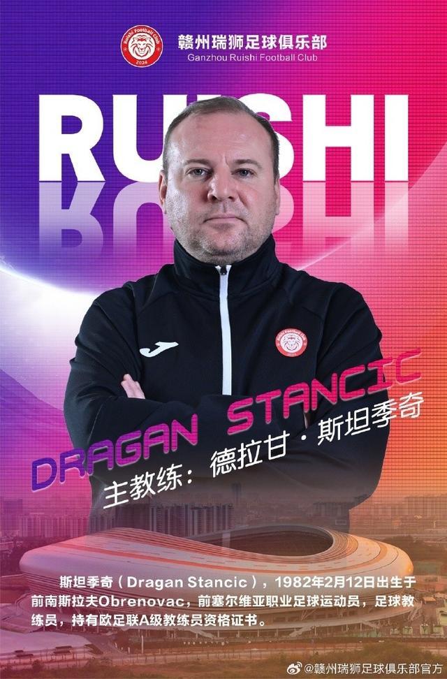 直播吧3月25日讯 中乙赣州瑞狮官宣新赛季栽种团队,CrownSports塞尔维亚东说念主德拉甘·斯坦季奇担任主栽种,李晓挺担任领队。