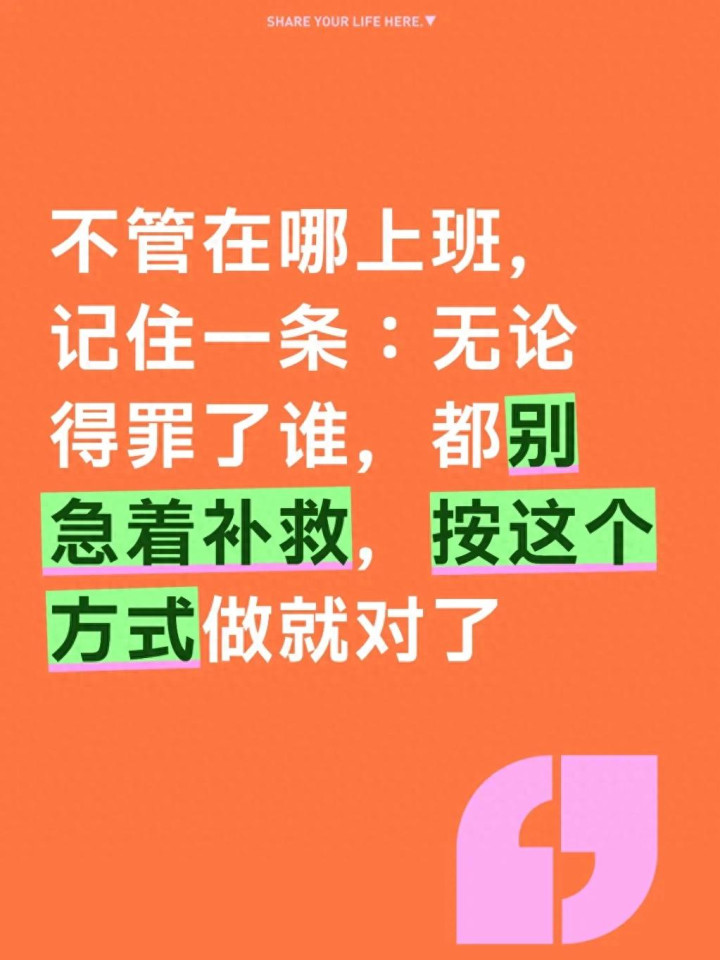 不管在哪上班,记取一条:不管得罪了谁,齐别急着拯救,按这个容貌作念就对了