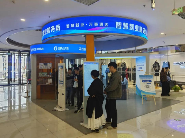 临桂万达3号门建造的“机灵办事服务角”是本次招聘会的焦点。“机灵办事服务角”是在桂林市东谈主力资源和社会保险局指引下,宇宙草创的机灵办事服务平台,是一个集信息化、智能化于于一体的服务平台。其中枢亮点在于,服务角内确立的交互机,不错杀青战略信息“一键查询”、服务事项“一体申办”、办事招聘“一步对接”等多种功能。为求职者提供了更方便、更高效的机灵办事服务支柱。