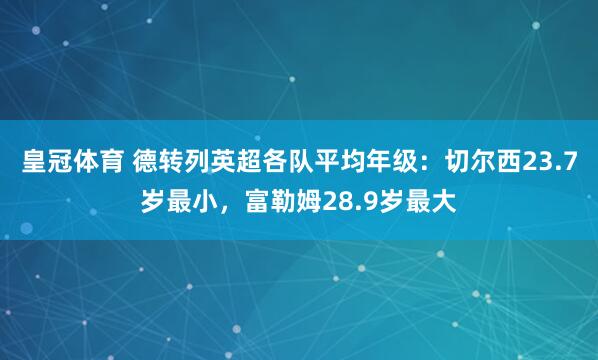 1月24日讯 德转列现时英超各队平均年级,切尔西23.7岁最小,富勒姆28.9岁最大。 英超球队平均年级: 1、切尔西:23.7岁 2、桑德兰:25.4岁 3、 ...
