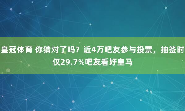 3月18日讯 欧冠1/8决赛次回合,皇马2-1双杀淘汰曼城。 淘汰赛抽签效果出来时,近4万吧友参与投票,70.3%吧友看好曼城皇冠体育,看好皇马的唯有29.7% ...