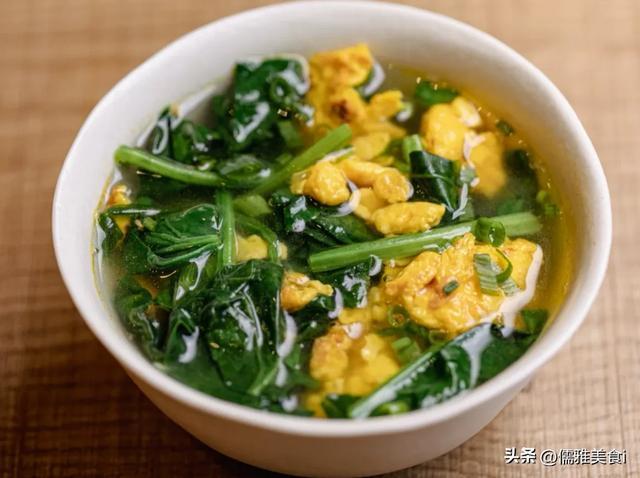 菠菜蛋花汤(清淡暖胃款):净水烧开,放极少菠菜段,淋入打散的蛋液搅成花,加极少盐、滴几滴香油,1分钟出锅,低脂又润肠说念。
