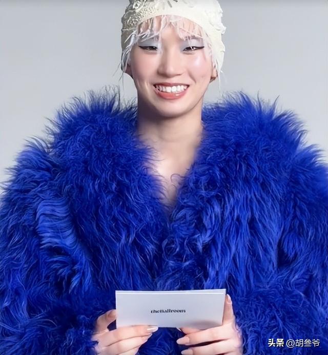 最出圈的是孑然蓝色毛毛大衣,搭配白色诚挚帽,脸上画着细巧的蓝色系妆容,见解凉爽又矍铄,所有这个词这个词东说念主就像从深海里走出来的精灵。